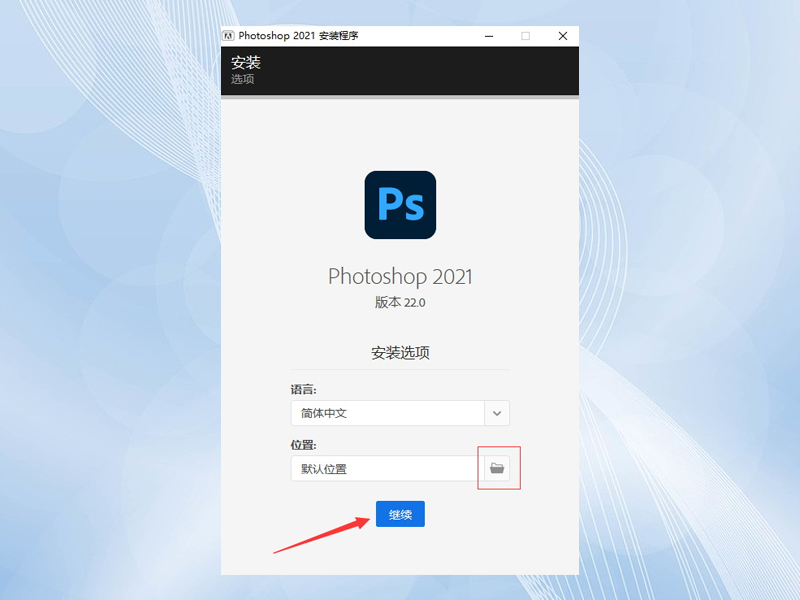 点击继续。或者你需要更改安装位置