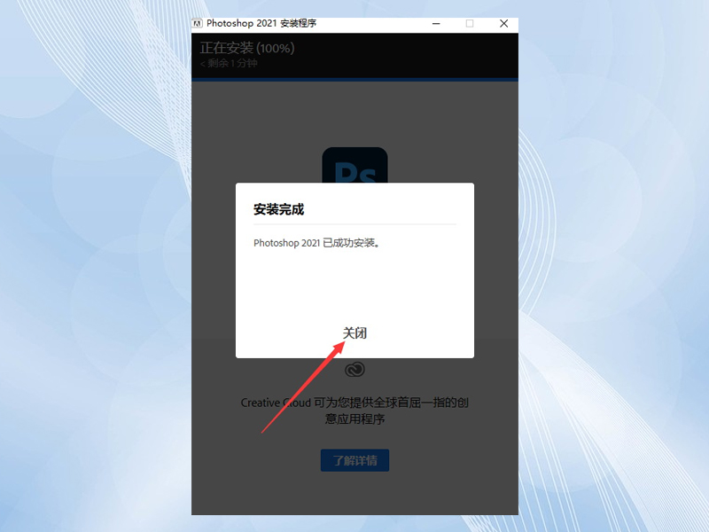 耐心等待软件安装成功,点击关闭,软件就安装成功了