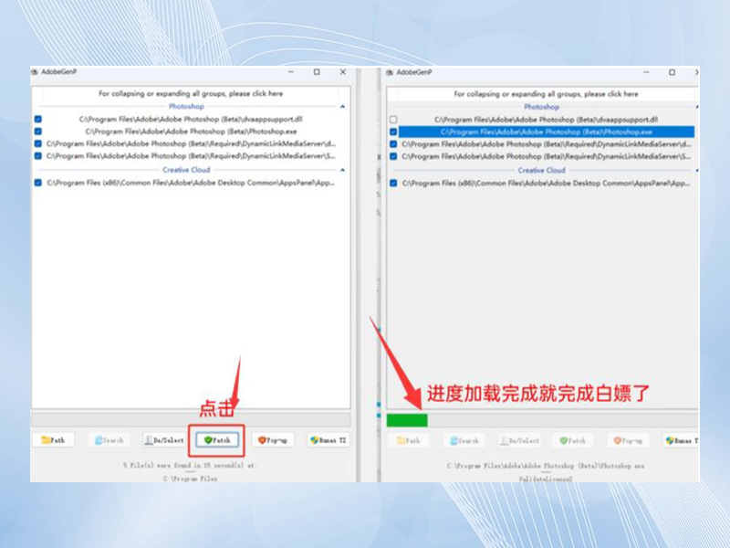 进度加载结束后点击patch,就完成白嫖操作了。